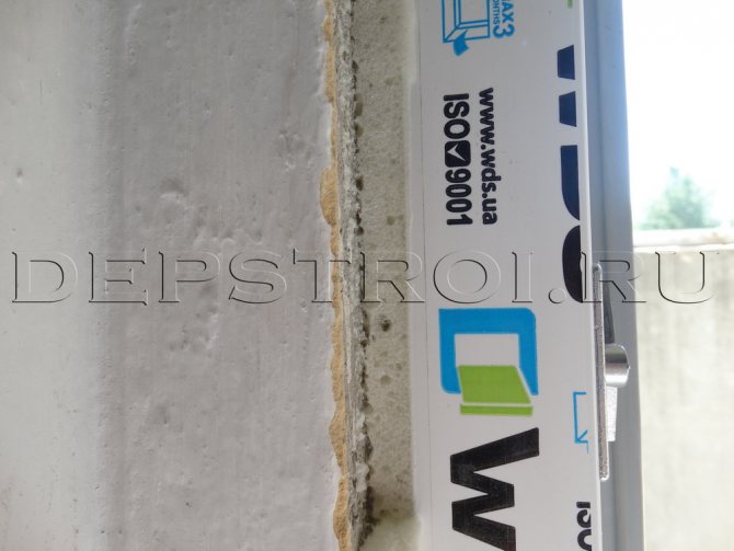 - Le cadre de la fenêtre n'adhère pas étroitement à la surface des pistes, laissant des joints appropriés, qui sont souvent remplis de mousse de polyuréthane pour l'étanchéité. Ce matériau présente d'excellentes propriétés d'isolation thermique, mais réagit souvent aux changements d'humidité et de température, sous réserve de destruction et de perte des fonctions de base.