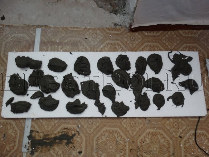 - Appliquez quelques gâteaux en stuc sur sa surface intérieure aux emplacements des phares. Il est pratique car, contrairement aux enduits et mastics de gypse, il durcit en seulement 3 à 5 minutes;