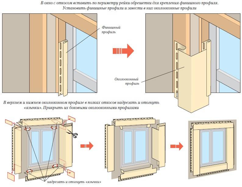 Leurs dimensions doivent tenir compte des tolérances nécessaires lors du montage dans les éléments de profilage de la structure assemblée. - Un profil de départ en forme de U est fixé au bord du cadre de fenêtre en plastique à l'aide de vis autotaraudeuses, dans lesquelles la partie d'extrémité de la finition de parement préalablement préparée sera insérée.