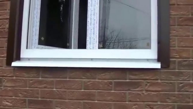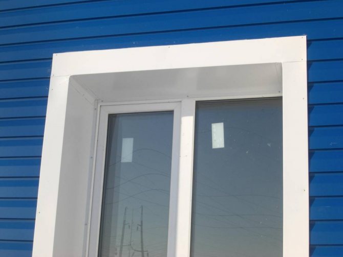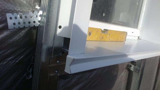 Après avoir installé la partie inférieure des pentes, les pentes latérales sont installées. En raison de la pente de l'ouverture de la fenêtre, les parties inférieures des fragments doivent être coupées à l'angle correct. Pour ce faire, il est nécessaire de mesurer très soigneusement et d'utiliser des vis autotaraudeuses pour fixer les pièces au cadre de la fenêtre.