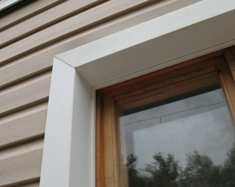Dans le cas où la façade de la maison est gainée de carton ondulé, lors de la finition des ouvertures de fenêtre, il est nécessaire d'utiliser des linteaux horizontaux. Ce sont des étagères latérales en tôle profilée, qui sont fixées au mur d'une part, et au profilé métallique d'autre part. Les plateaux en acier ajoutent une touche finale à la façade.