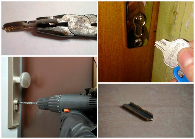 Si une serrure à cylindre est intégrée à la porte, vous devriez essayer de rechercher une clé similaire dans la maison et ainsi l'ouvrir. Il existe également une option pour remplir le noyau d'acide, ce qui le corrodera, après quoi il sera possible d'ouvrir la porte sans problème. Mais tous les foyers n'ont pas une bouteille d'acide.