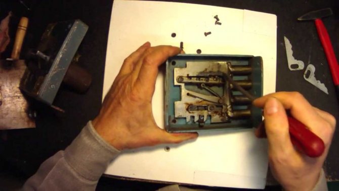 - Avec son aide, vous devez dévisser les boulons du mécanisme de verrouillage.