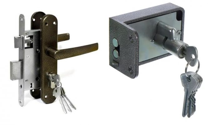 Plusieurs types de serrures sont utilisés dans les portes en fer. Ils peuvent être découpés, lorsqu'une place est spécialement découpée pour le boîtier du mécanisme, ainsi que des insertions. Dans ce cas, la serrure est montée dans la toile au stade de son assemblage en usine.