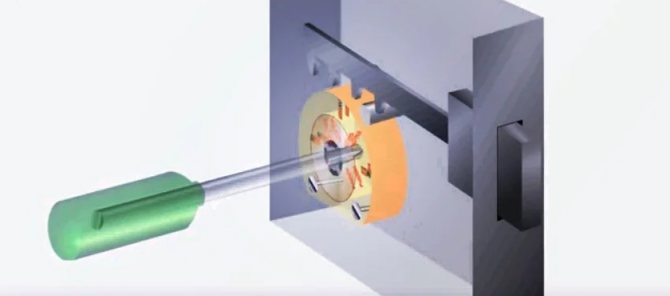 - Si vous ne pouvez pas retirer le cylindre, vous devez insérer un tournevis à la place de la clé, tournez-le de manière à sembler ouvrir la serrure. Dans les cas extrêmes, vous devez enfoncer un tournevis dans la serrure.
