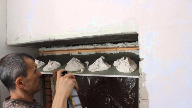 Remplissez les grandes fissures et cavités avec un chiffon imprégné d'un mélange de gypse. Lorsque nous isolons le long du contour, nous laissons un espace allant jusqu'à 30 mm sur les parties latérales.