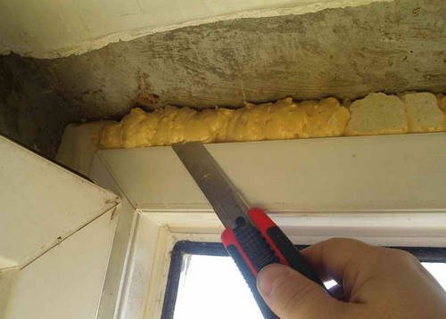 L'étanchéité de la fenêtre est réalisée par de la mousse de polyuréthane. À l'extérieur, du côté de la rue, il est également soigneusement taillé et plâtré. La mousse ouverte s'assombrit sous l'influence de la lumière directe du soleil, s'effondre, s'effrite. Il est important de couper soigneusement les joints extérieurs pour maintenir l'étanchéité, l'isolation contre la chaleur et l'humidité.