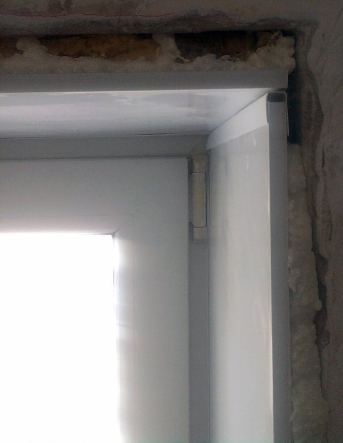 Le profil latéral est monté de la même manière que la barre supérieure. Et les espaces entre le cadre de la fenêtre, le mur doit être rempli de mousse de construction, pour laquelle la surface est d'abord humidifiée avec de l'eau. Après cela, vous devez appuyer le panneau en plastique contre la base et le fixer avec des vis à métal.