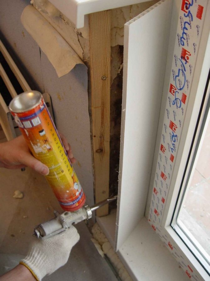 Moins de saleté et de poussière seront lors de l'utilisation d'une doublure en PVC ou de panneaux sandwich. Pour ce faire, nous avons besoin de clous liquides et de guides le long desquels le plastique sera attaché. Lorsque l'ouverture de la fenêtre est gainée de bardeaux en PVC, une caisse est préfabriquée, dans la cavité de laquelle l'isolant est placé.