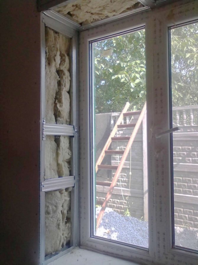 Un sandwich pour les pentes de fenêtre est sélectionné avec une épaisseur de 20 mm. Le gainage est réalisé par étapes:
