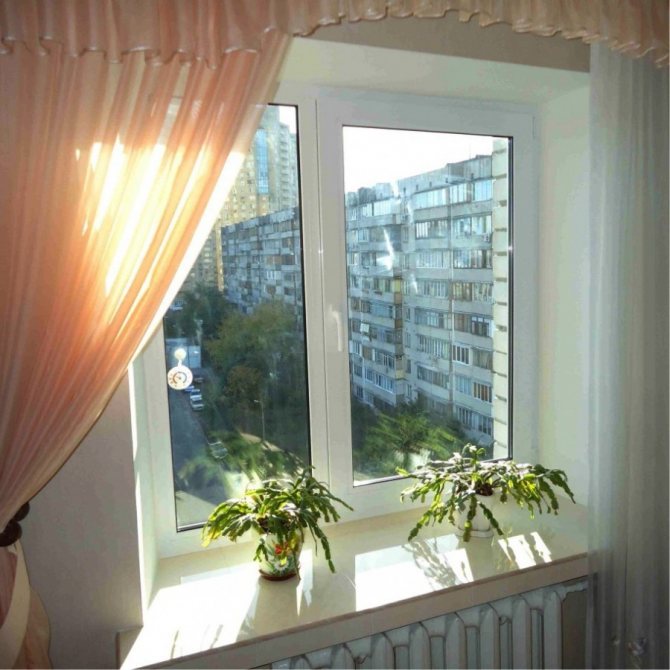 - Les panneaux sont constitués du même matériau que le cadre de la fenêtre, par conséquent, l'espace près de la fenêtre de la pièce acquiert une structure monolithique.
