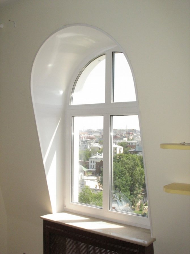 Vous pouvez utiliser un revêtement en placoplâtre, avec ou sans isolation. Excellent alignement, facilité d'installation, durabilité - souligne favorablement la préférence pour ce type de conception de fenêtre.