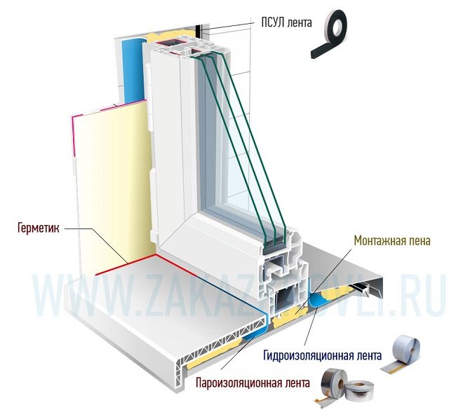 La technologie même d'installation de fenêtres et d'utilisation d'un ruban pare-vapeur est la suivante. Nous nettoyons l'ouverture de la saleté et de la poussière, installons le cadre de la fenêtre et sans le fixer, le marquons sur les murs de l'ouverture et sur le cadre de la fenêtre de la ligne de fixation du ruban pare-vapeur. On enlève le cadre de l'ouverture et on colle un ruban pare-vapeur dessus, on n'enlève pas la bande de protection sur la partie qui sera collée au mur ! Nous installons un ruban pare-vapeur sur une fenêtre en PVC avec un seul morceau de ruban, sans déchirure ! Vous pouvez maintenant assembler une fenêtre avec des châssis et l'installer à sa place. Installez le ruban pare-vapeur sur le rebord de la fenêtre en dernier.