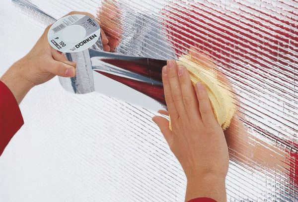 Si le ruban est collé sous une couche de plâtre, il doit avoir une couche spéciale qui fournira une forte adhérence au matériau de construction. Le joint irrégulier entre le mur et le cadre de la fenêtre est fermé avec une bande et un pare-vapeur est collé dessus. L'utilisation de matériaux de construction pour la décoration murale n'est autorisée que si les exigences de perméabilité à l'eau sont pleinement respectées.