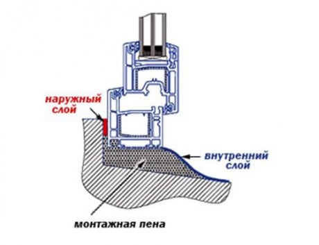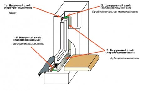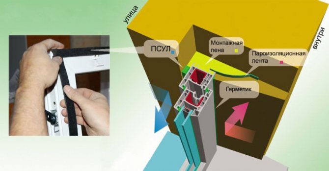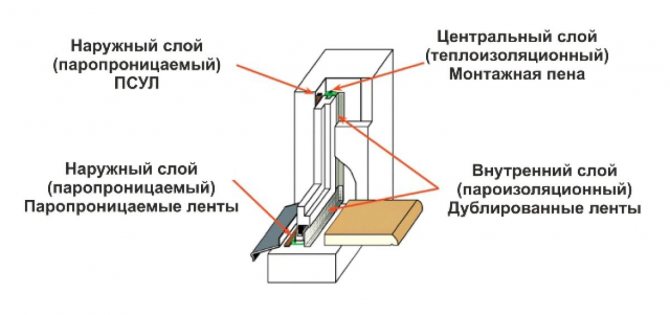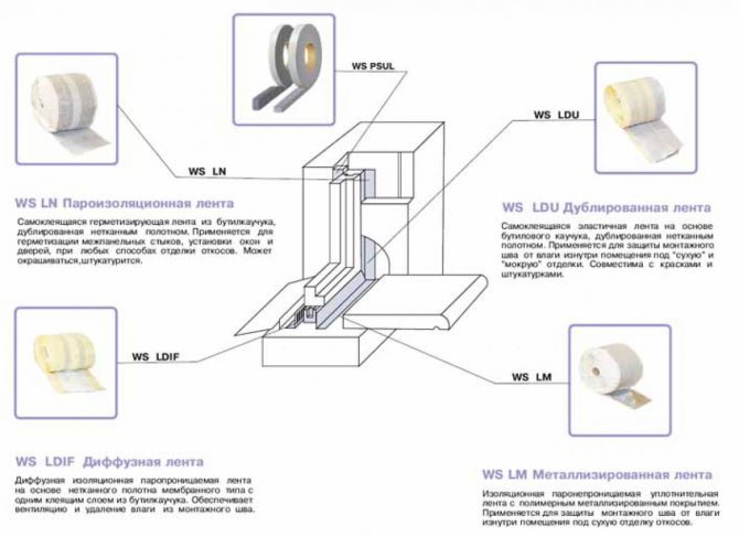 Le pare-vapeur empêche l'humidité de l'air intérieur d'absorber dans le matériau d'isolation thermique. Le coefficient de perméabilité à la vapeur du pare-vapeur des joints internes des fenêtres en PVC ne doit pas dépasser 0,01 mg / (m * h * Pa).