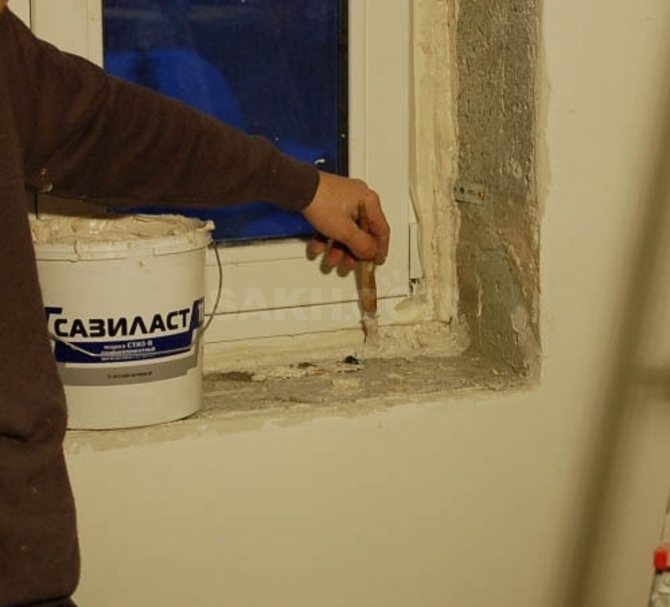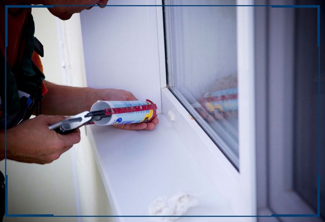 Photo de la mise en œuvre de l'imperméabilisation d'une fenêtre en plastique