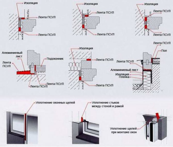 Dans le premier cas, vous avez besoin de mousse de polyuréthane et de ruban d'étanchéité. Dans le second, seule la bande suffit. Dans le troisième, des mastics de silicone doivent être utilisés. Examinons ces matériaux plus en détail.