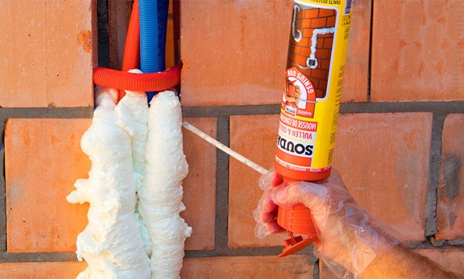 Il est moins pratique de travailler avec de la mousse ménagère: les deux mains sont utilisées et la canette doit être placée de bas en haut. Cela fournira un rendement de solution plus complet. Utilisez-le avec le plus grand soin, dans les endroits les moins importants. Remplissez la couture pas plus de 50% de la profondeur!