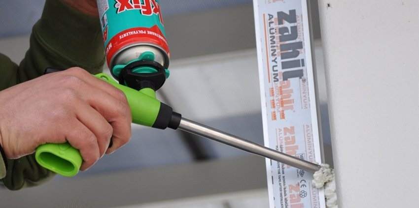 - Des taux d'adhérence élevés permettent à la mousse d'être utilisée comme matériau de fixation: elle maintient en place de manière fiable les cadres de fenêtres ou de portes, ainsi que d'autres éléments.