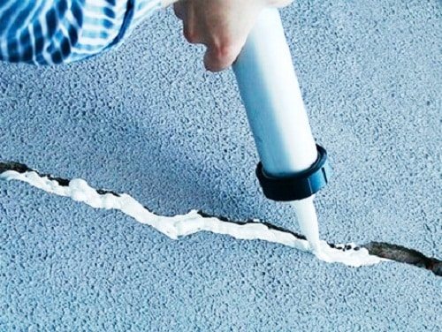 - À l'aide d'une seringue de construction, pressez lentement le mastic dans la zone de couture. L'outil doit être incliné de manière à ce que la pointe aplatit le matériau à appliquer.
