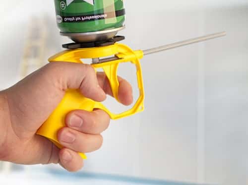 Les bouteilles de mousse professionnelles ont une valve spéciale dédiée au pistolet applicateur. Ainsi, vous ne pouvez pas simplement acheter un cylindre en mousse et l'utiliser tout de suite: vous avez besoin pistolet d'assemblage... Cet appareil permet de doser la mousse, de calculer sa quantité et de réduire la consommation inutile, et le long canon fin permet de délivrer de la mousse dans des endroits difficiles d'accès. De plus, c'est pratique: vous pouvez travailler avec un tel appareil d'une seule main, le tenir assez confortablement, et cela peut être fait non seulement à l'envers, comme d'habitude, mais aussi vice versa.