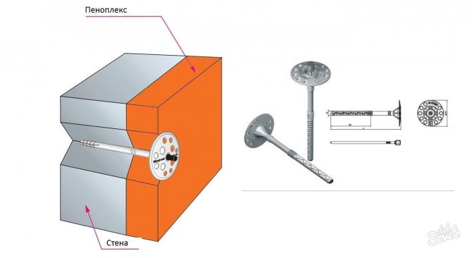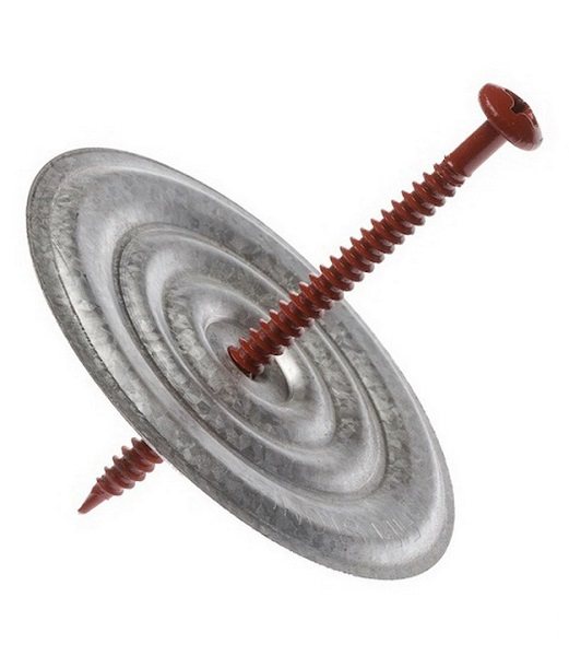 Pour la fixation de chaque dalle, au moins cinq chevilles sont nécessaires. Pour eux, des trous sont percés dans l'isolant. Pour éviter que la vis autotaraudeuse ne pousse la plaque, une rondelle est placée sous sa tête.