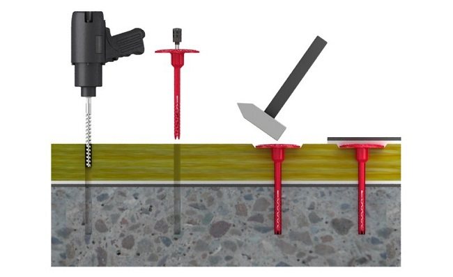 Pour améliorer la résistance, la fixation de l'isolant avec des chevilles est associée au collage. Malheureusement, le perçage des trous pour les goujons casse l'étanchéité de la dalle, ce qui fait qu'un passage pour le froid apparaît.