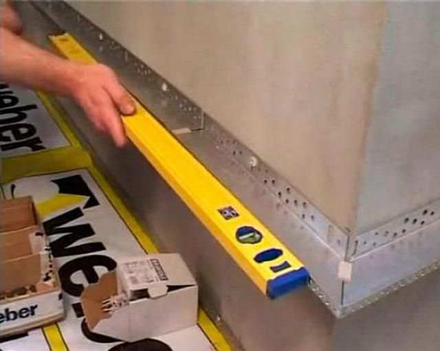 Au stade initial des travaux, la barre de départ est fixée. Il s'agit d'une latte de bois ou d'un coin perforé. La barre est conçue pour empêcher les dalles de glisser et indique également le sens de pose. Il est sélectionné en fonction de l'épaisseur de la mousse.