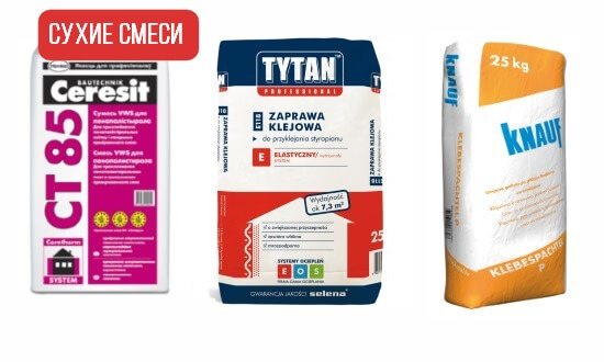 La plupart des mélanges conviennent pour coller du polystyrène à l'extérieur et à l'intérieur de la maison - sur du béton, du bois et d'autres matériaux. À partir d'eux, il est nécessaire de préparer une solution adhésive en ajoutant la quantité d'eau spécifiée dans les instructions. Consommation par 1 m² m de surface - environ 1,5 à 2 kg de la masse finie. De nombreux composés peuvent en outre sceller les joints entre les dalles. De plus, ils conviennent au remplissage des murs.