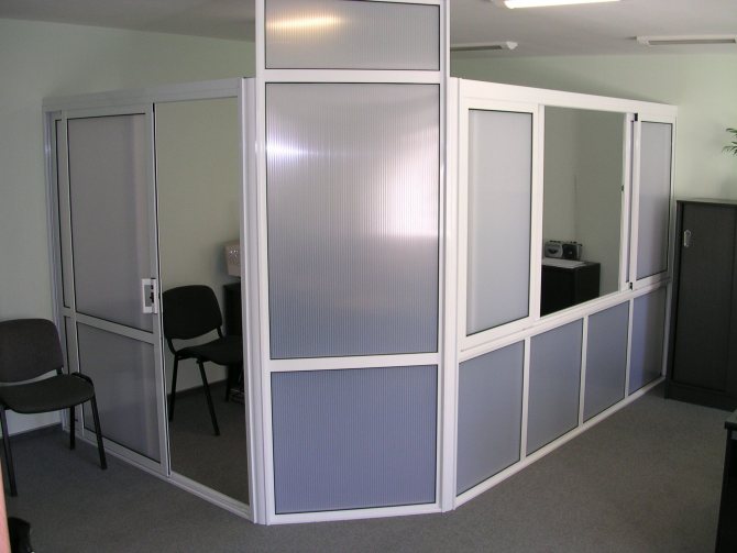 Les cloisons sont en plastique, les cloisons de bureau sont faites de profilés en PVC et de fenêtres à double vitrage. Le cadre est très résistant, il est équipé d'éléments de renforcement. La quincaillerie remplit certaines fonctions, ouvrant le châssis et la porte. L'isolation phonique et thermique dépend de l'épaisseur de la chambre; le verre à haute résistance est conçu pour la production. Divers éléments, fils téléphoniques et autres éléments sont placés à l'intérieur du cadre. Vous pouvez voir des cloisons de bureau et des fenêtres en plastique sur remontokon56.ru.