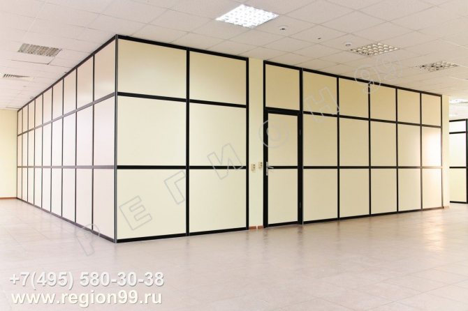 Ils sont installés de manière permanente, prévoyant la présence d'une porte d'entrée battante ou coulissante. Les cloisons de bureau en PVC peuvent être sélectionnées dans n'importe quelle palette de couleurs en harmonie avec l'intérieur général de la pièce.