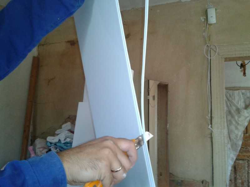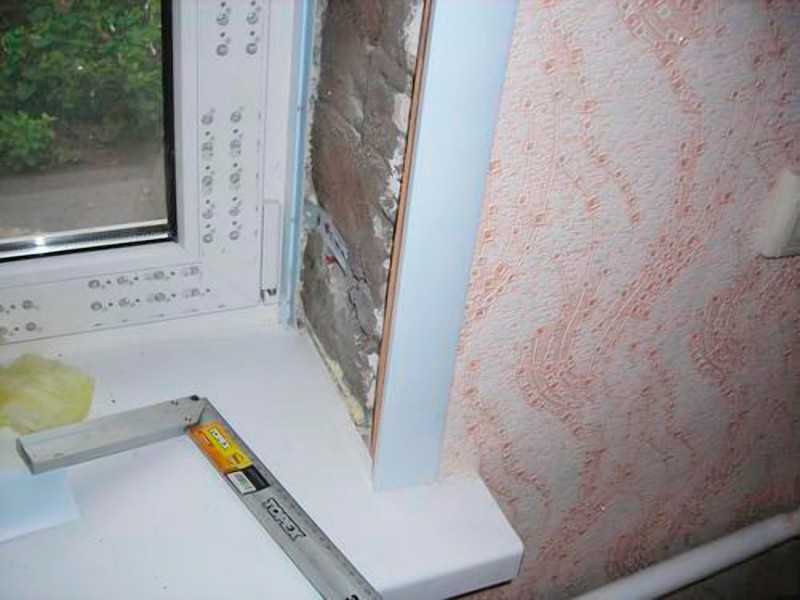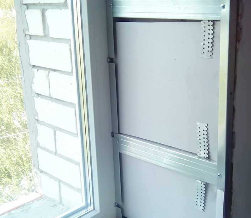 - Sciage et ajout de produits finis de finition (plaques de plâtre, panneaux de bois, panneaux sandwich) au revêtement séché à l'aide de clous liquides ou de vis autotaraudeuses (il doit être monté avec le côté scié sur la fenêtre);