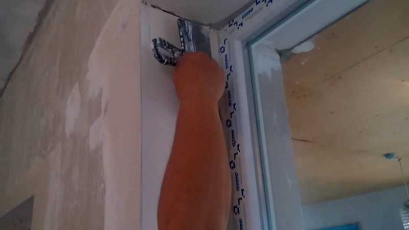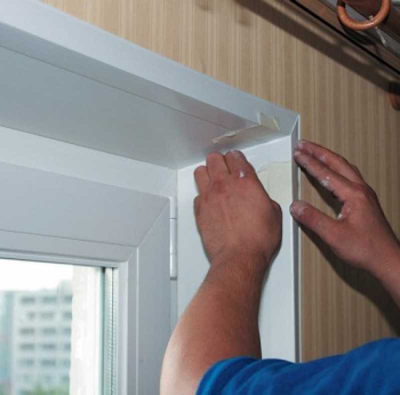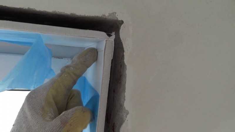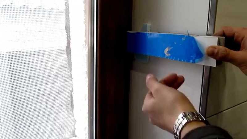 - Appliquer du ruban de masquage sur tout le périmètre des joints entre la structure de la fenêtre et l'ouverture, de sorte qu'à l'avenir, le profilé ne se salisse pas à cause du plâtrage et que le mélange lui-même ne dépasse pas la pente;
