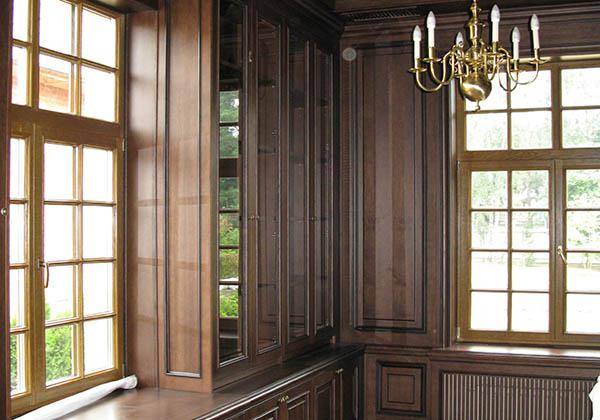Lors de la fabrication de pentes en bois, des boucliers collés spéciaux sont utilisés, qui sont traités avec des composés spéciaux pour éviter l'exposition à l'environnement. Pour la fabrication des pentes, il est recommandé d'utiliser la même essence de bois que celle utilisée pour la fabrication des cadres de fenêtres - dans ce cas, la couleur et la texture du bloc de fenêtre correspondront parfaitement et les fenêtres en bois avec des pentes seront avoir l'air solide.