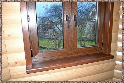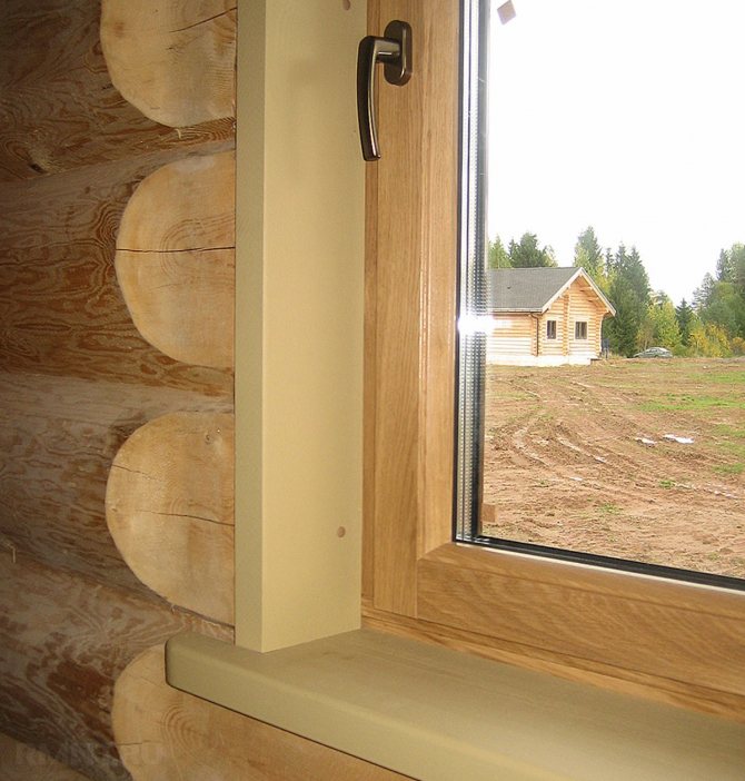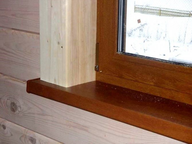 Si des fenêtres en plastique sont installées dans une maison en bois, les pentes peuvent également être en bois. À cet effet, une planche d'une épaisseur de 18 à 20 mm est utilisée, qui est découpée et vernie sur tous les côtés.