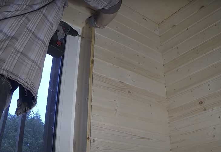 Le long du périmètre extérieur de l'ouverture, nous montons la bande de bois à l'aide de chevilles et de vis. Pour créer un beau contour, vous devez définir le plan horizontal et vertical des pentes à l'aide d'un niveau de bâtiment et d'une doublure en bois ou en plastique.