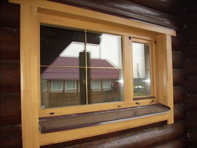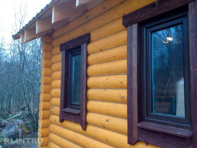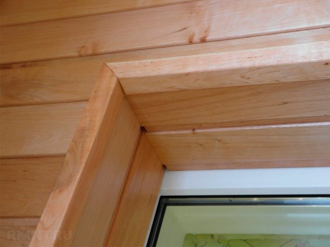 Comme déjà mentionné, l'installation de panneaux droits est effectuée dans les cas où une fenêtre en bois classique est montée dans une cabane en rondins dans un caisson brut (dans une poutre de fondation ou dans une poutre en forme de T sans finition).