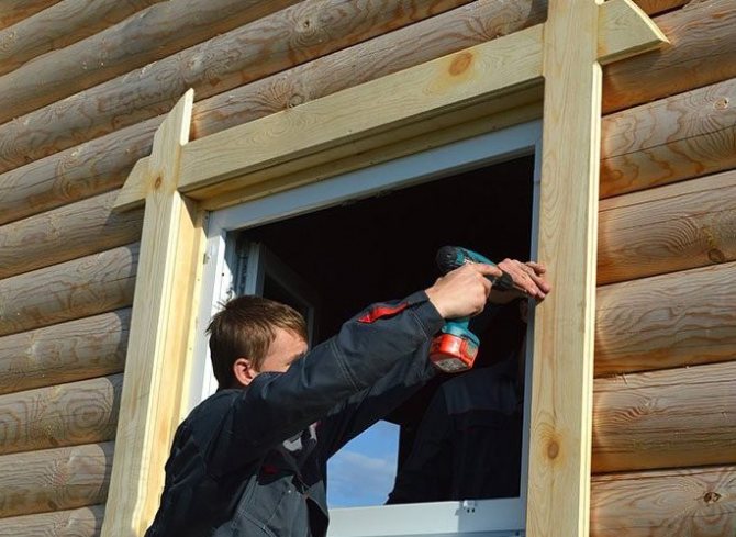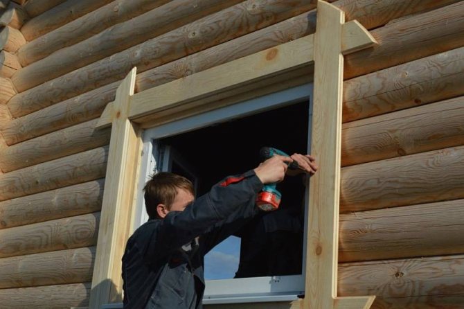 Afin de finir les fenêtres à l'extérieur dans une maison en bois, il est nécessaire de préparer les matériaux et outils suivants:
