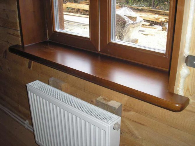 Si le cadre et les pentes sont en chêne, le même bois doit être utilisé pour le rebord de la fenêtre. En fait, vous pouvez faire des pentes à partir de n'importe quel type de bois. Mais alors vous devrez bien le traiter avec un vernis protecteur pour le protéger du soleil et de la pluie.