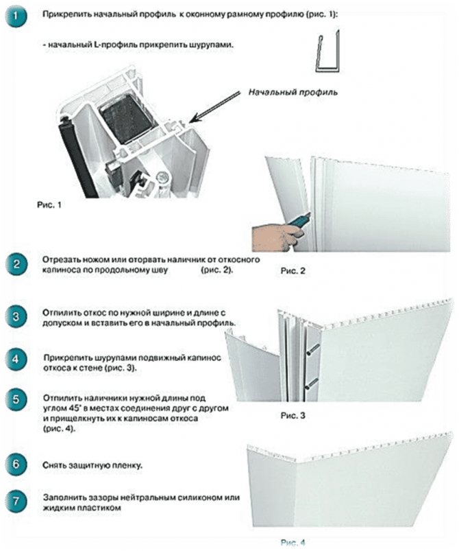 L'étape finale de la finition des pentes des fenêtres de vos propres mains est l'installation des panneaux en plastique eux-mêmes. Les panneaux sont insérés entre 2 profils de départ.