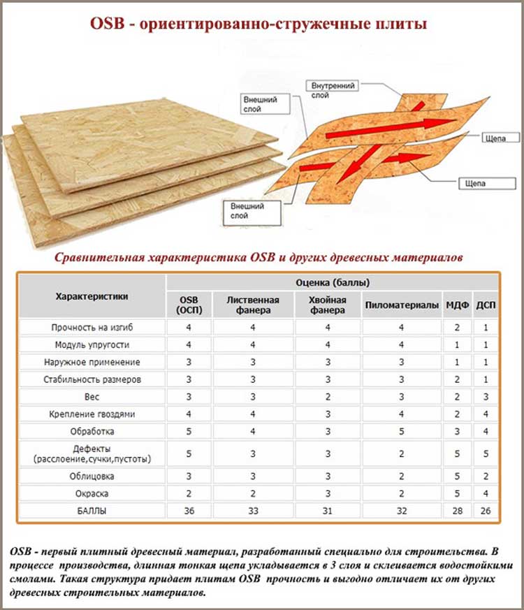 Ces dalles sont réalisées par pressage thermique de copeaux de grande taille (petits copeaux) de bois de conifères, posés en couches et orientés en couches. L'orientation multidirectionnelle des copeaux dans différentes couches offre une résistance et une rigidité accrues du matériau, ce qui fait que l'OSB est largement utilisé dans la construction (revêtement de cadres de maison, revêtement de sol des sous-planchers, production de coffrages, production de panneaux SIP), dans la production de meubles dans la fabrication de conteneurs, etc. ...