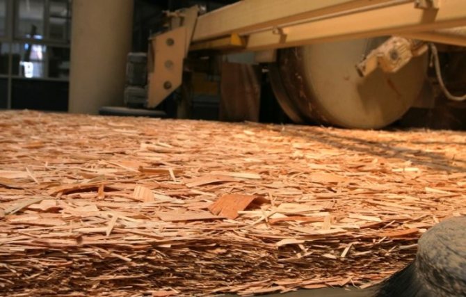 - Réception des matières premières et traitement de celles-ci. Le principal composant des panneaux OSB est les déchets de l'industrie du bois - le bois non commercial, qui a été rejeté. Les déchets de bois sont trempés à une certaine température et nettoyés.