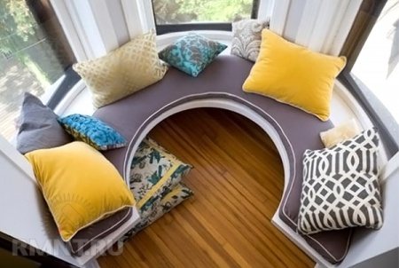 Le moment suivant est l'agencement d'une surface douce. Convenez que s'asseoir sur du plastique ou de la pierre ne sera pas très confortable. L'option la plus simple est un matelas adapté à la taille d'un appui de fenêtre allongé ou de plusieurs oreillers simplement jetés sur un siège en bois ou en aggloméré stratifié.