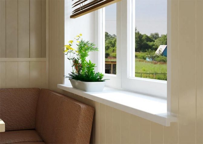 On pense que le bois est le moins approprié pour un balcon, mais le béton et la pierre naturelle ou artificielle sont difficiles à travailler et, de plus, ils ont un coût élevé. À cet égard, les matériaux modernes gagnent - le plastique et les panneaux de particules, qui ont un revêtement résistant aux chocs et à la chaleur. Et la taille des appuis de fenêtre en plastique peut être adaptée à n'importe quelle fenêtre.