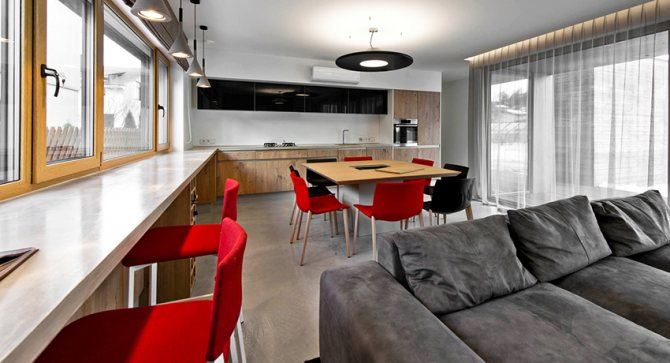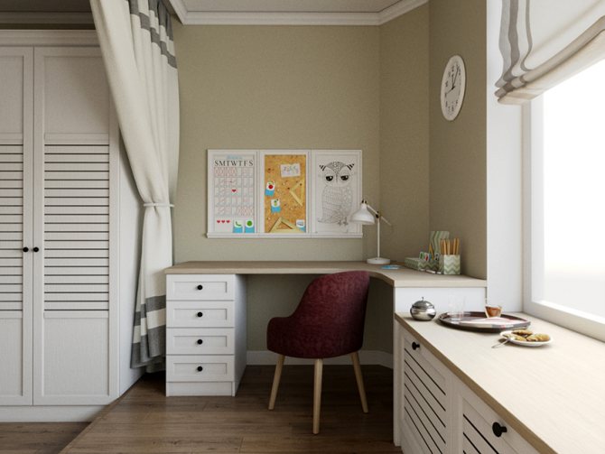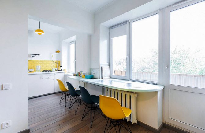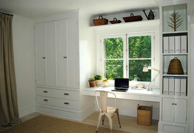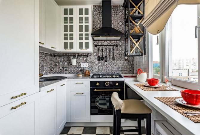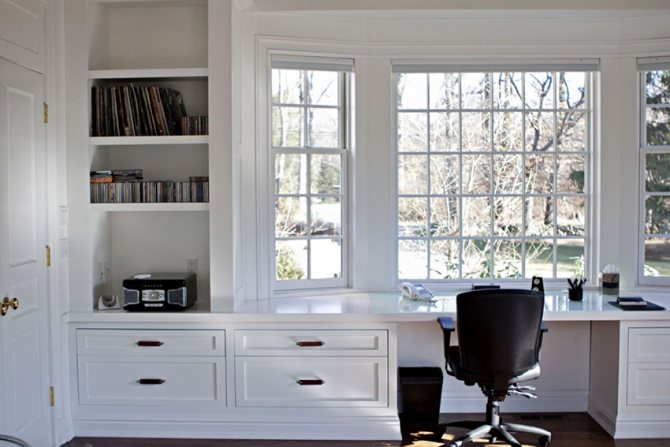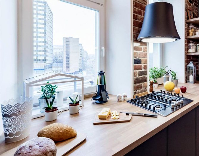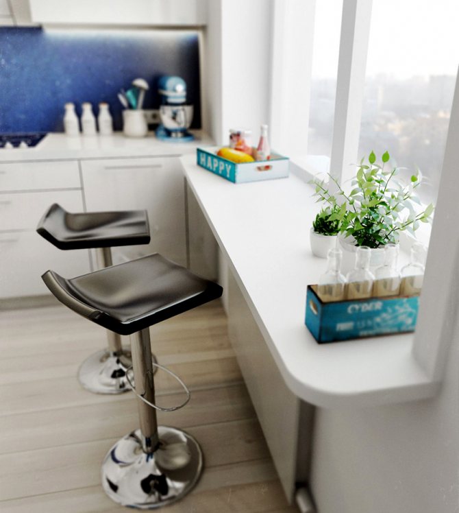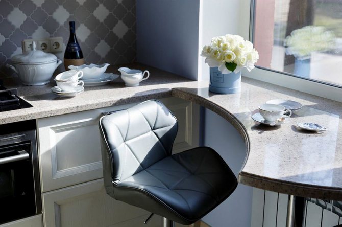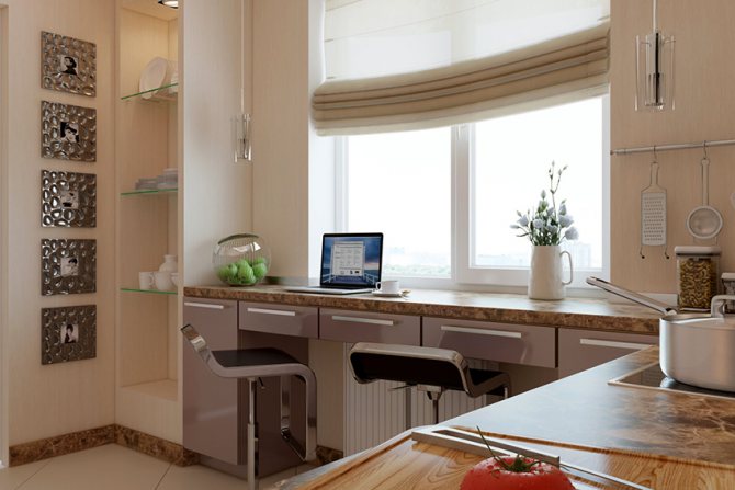 - Bureau. Il n'est pas nécessaire que ce soit juste un bureau; dans les conditions d'un studio, il est très important de faire du rebord de la fenêtre une partie fonctionnelle de l'espace cuisine.