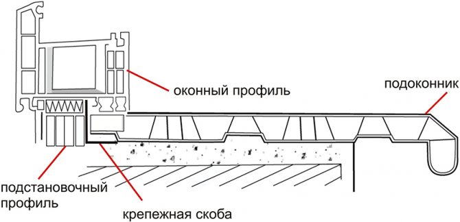 Un appui de fenêtre est monté, quelle que soit sa taille, à l'aide d'un profilé de support de section rectangulaire. Le plus souvent, vous pouvez voir que l'installation a lieu à un angle de 90 ° par rapport au plan de la fenêtre, bien que parfois l'installation soit effectuée en pente. Dans ce cas, vous devez maintenir les proportions correctes - pente de 3 cm pour chaque 30 cm de largeur du produit.