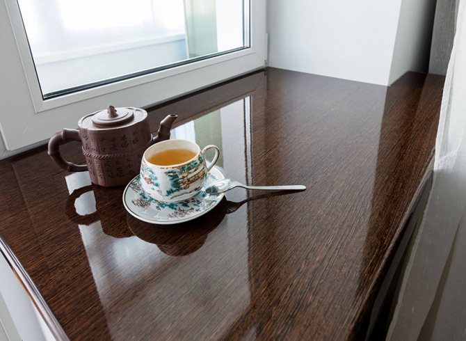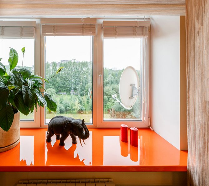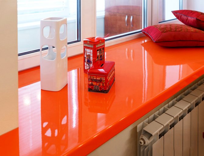 Important! La plupart des concepteurs se concentrent sur le fait que les appuis de fenêtre mats et brillants peuvent s'intégrer dans tous les intérieurs, car ils peuvent recevoir n'importe quelle couleur qui complète parfaitement le design environnant.