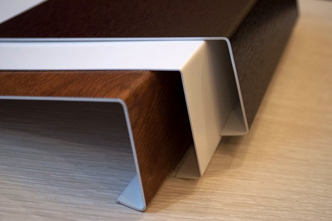 C'est intéressant!Pour obtenir un rebord brun, du plastique blanc et du colorant acrylique sont mélangés. Pour obtenir une apparence attrayante, le produit fini passe par un processus de laminage.