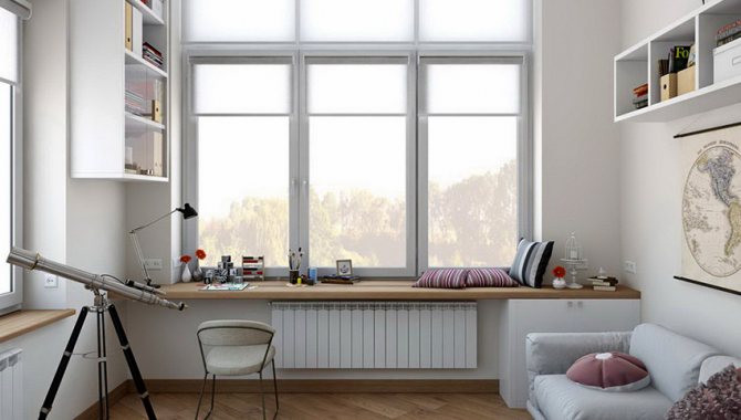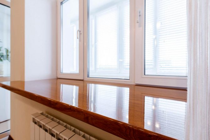 - Forme un microclimat dans la pièce. Grâce au rebord de fenêtre installé, le mouvement des flux de chaleur est régulé, car l'air chaud est repoussé de la surface et tombe directement sur le verre, ce qui empêche l'apparition de condensation sur les fenêtres.