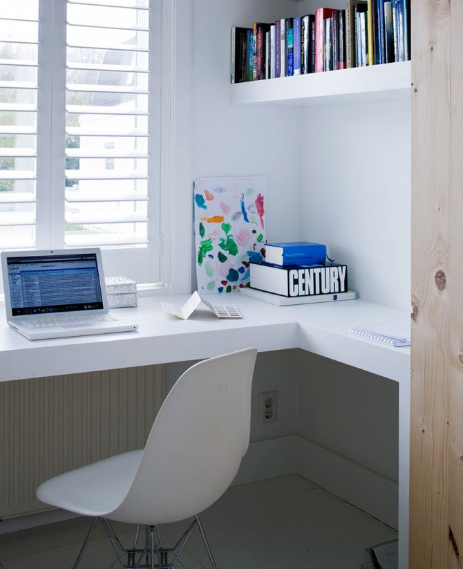 - Espace de rangement pour les livres. La mini-bibliothèque peut être complétée par une table côte à côte et un luminaire.